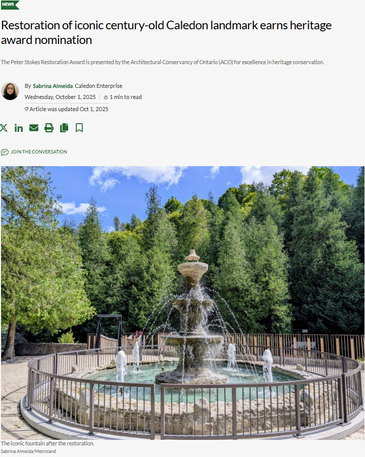 Caledon Enterprise Article – Restoration of Iconic Century-Old Caledon Landmark Earns Heritage Award Nomination